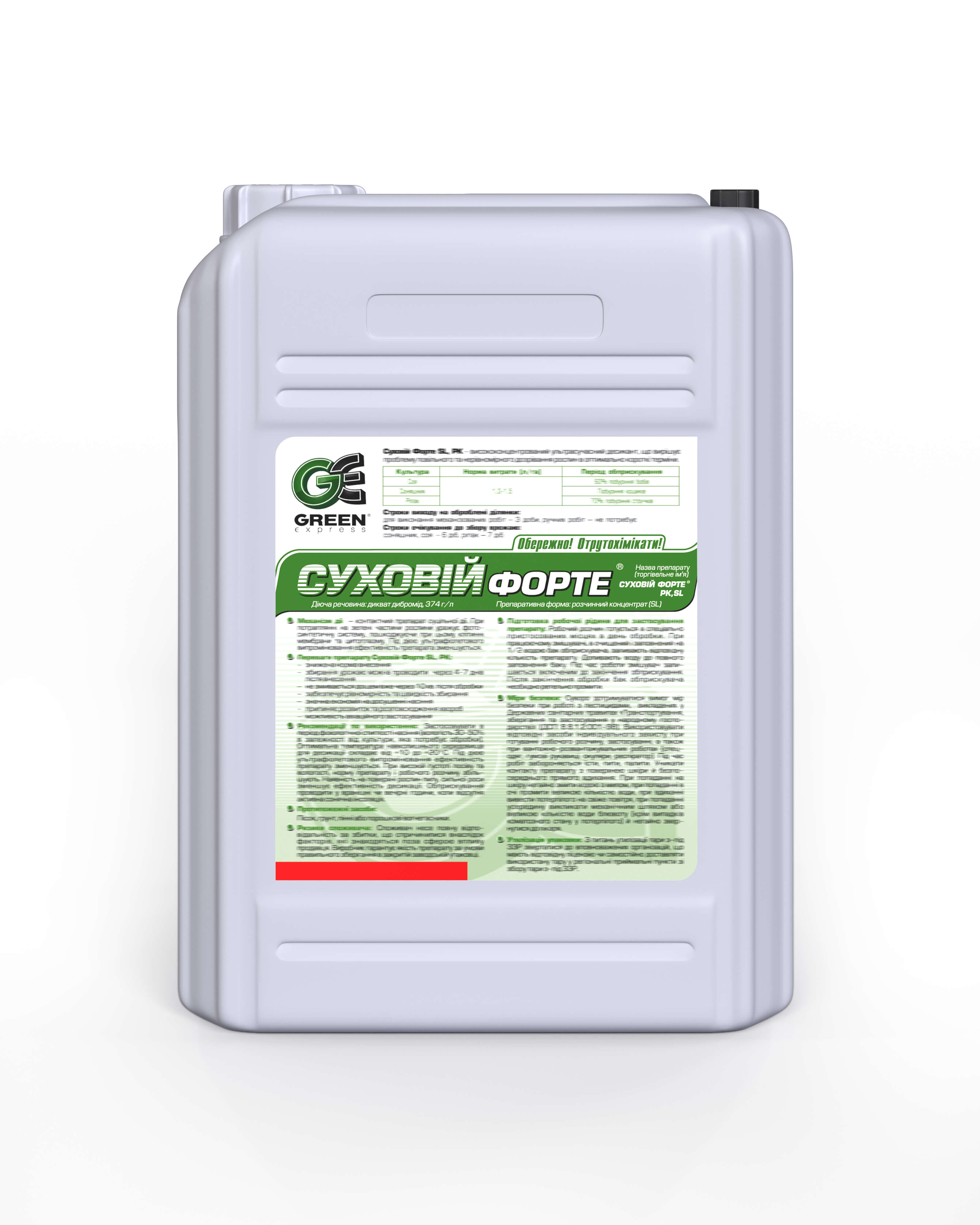 • СУХОВІЙ ФОРТЕ SL, PK – висококонцентрований ультрасучасний десикант, що вирішує проблему повільного та нерівномірного дозрівання рослин в оптимально короткі терміни. Можливе авіаційне внесення.
