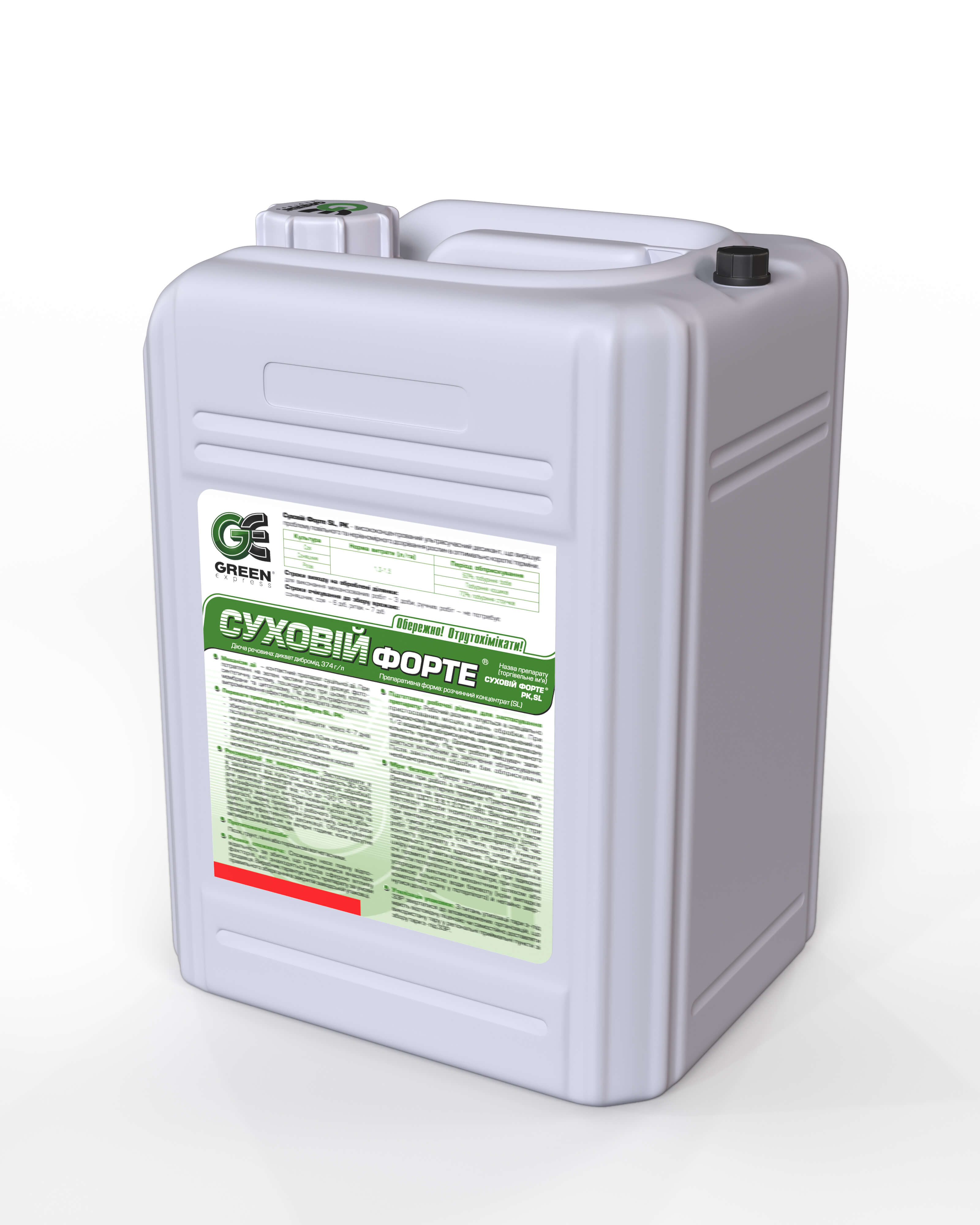 СУХОВІЙ ФОРТЕ SL, PK – контактні препарати суцільної дії. При потраплянні на зелені частини рослини вражають фотосинтетичну систему, пошкоджуючи при цьому клітинні мембрани та цитоплазму. Під дією ультрафіолетового випромінювання ефективність препаратів зменшується.