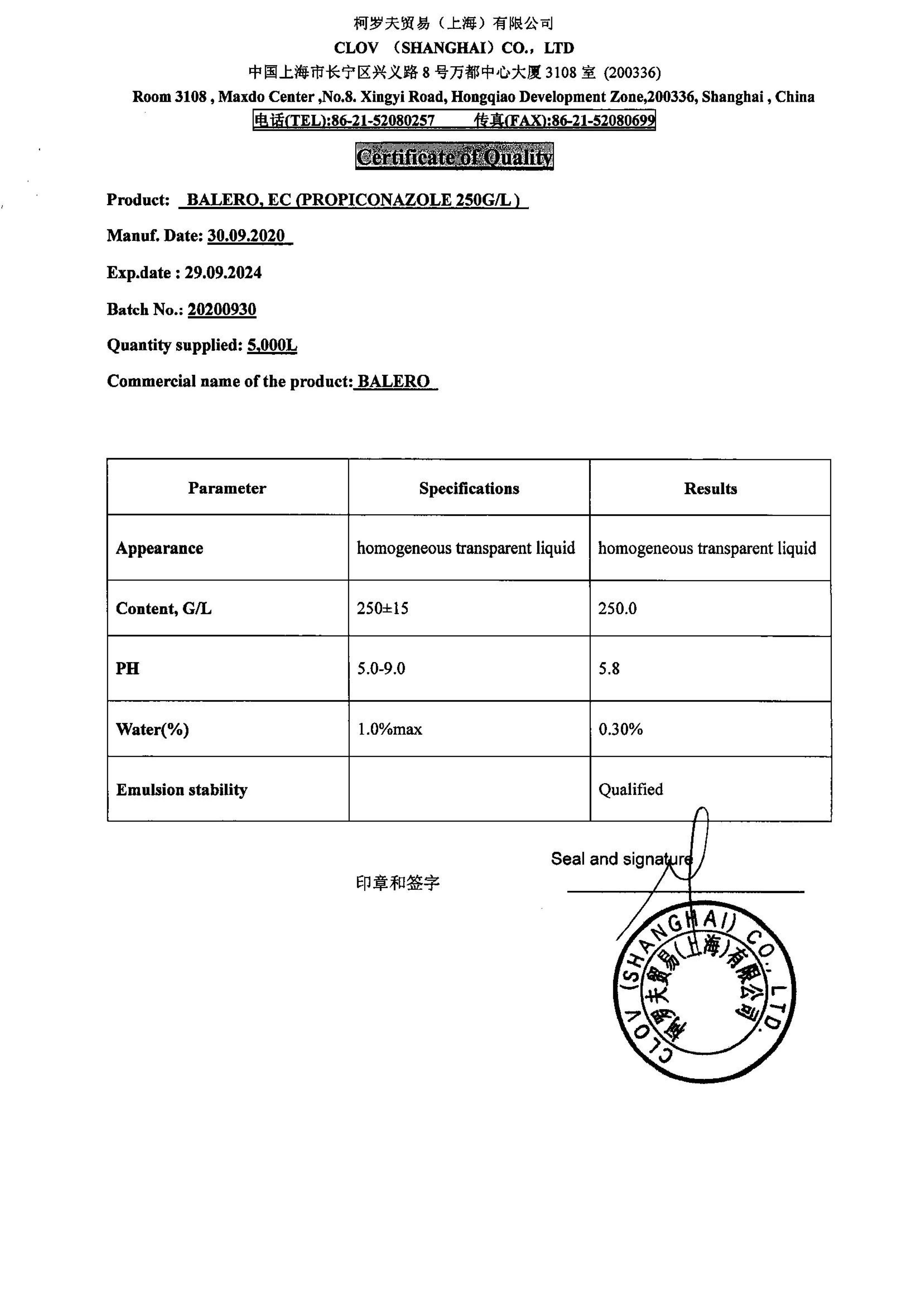 БАЛЕРО ЕС, КЕ – фунгіцид системної дії, діюча речовина якого поглинається частинами рослини й переноситься від коріння до верхівок. Зупиняє розвиток хвороби та пригнічує спороутворення. Фунгіцидна дія ґрунтується на інгібуванні біосинтезу ергостерину в збуднику. Завдяки використанню препарату в рослин покращується інтенсивність фотосинтезу листової поверхні.