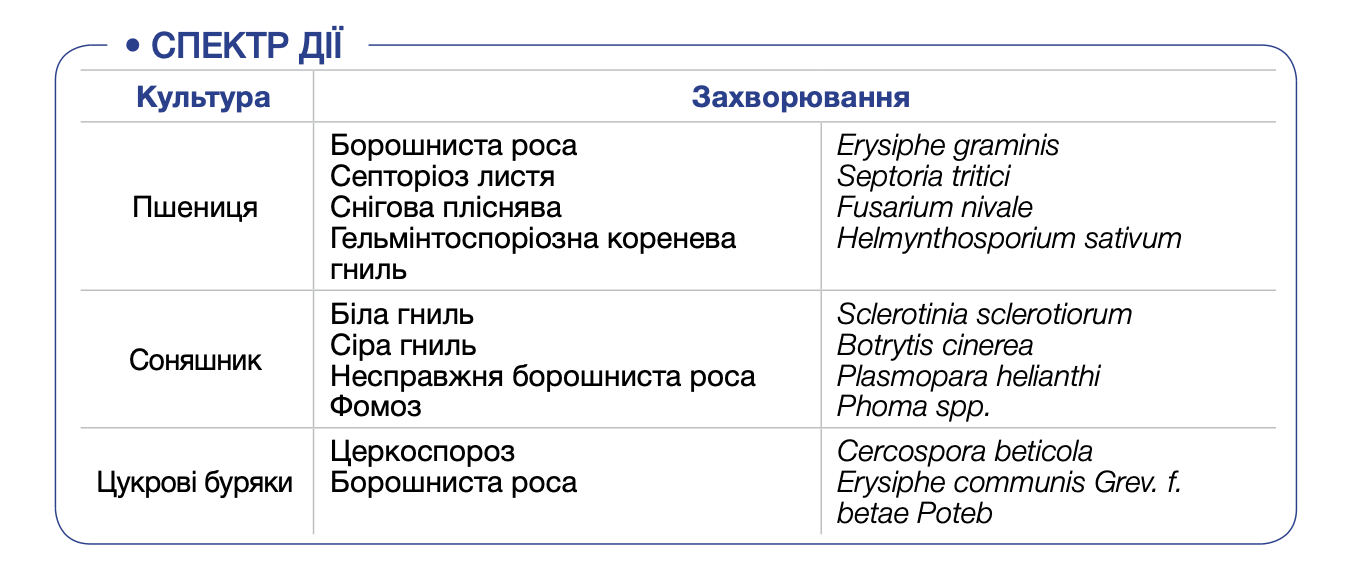 ефективний проти шкодочинних грибів: базидіоміцетів, аскоміцетів, дейтероміцетів