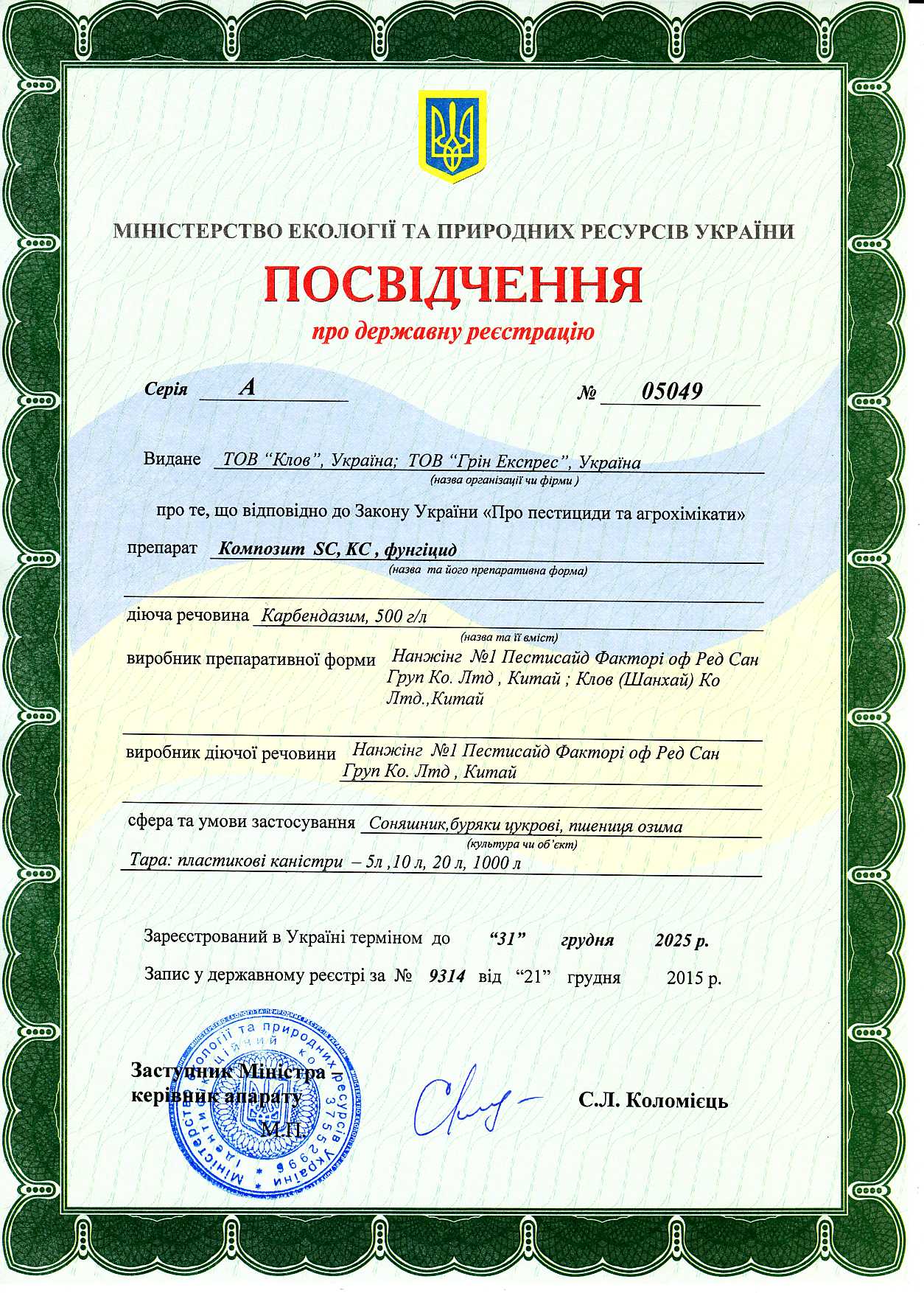КОМПОЗИТ SC, KC – препарат листкового застосування для боротьби з хворобами пшениці, цукрових буряків і соняшнику. Має захисну й лікувальну дію, захищає від хвороб, які містяться всередині, а також на поверхні рослини. При правильному використанні КОМПОЗИТ SC, КС не чинить фітотоксичного впливу на ріст і розвиток рослин культури.