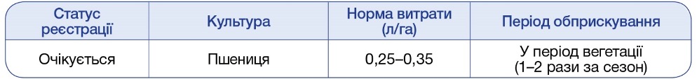 На зернових культурах обробку слід проводити якомога раніше, до появи перших ознак хвороб. Застосування є доцільним на початку виходу рослини в трубку або після появи прапорцевого листка. Дуже важливу роль має захист двох верхніх листків, від яких залежить налив зерна. Обробку рекомендовано проводити при температурі повітря в межах від +12°С до +24°C при оптимальній вологості повітря. Обприскувати слід вранці або ввечері, при швидкості вітру, що не перевищує 5 м/с. Випадіння опадів менш ніж за 1 год після обробки зменшує ефективність дії препарату. Сумісний з багатьма препаратами, але в будь-якому разі потрібно перевіряти на сумісність. Норма робочого розчину – 250–300 л/га. Робочий розчин необхідно використати впродовж кількох годин після приготування.