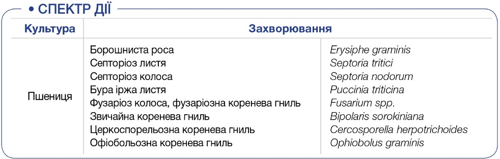 завдяки високій інтенсивності поглинається рослиною, дуже швидко переміщується всередині рослини й уже через 6 год після обробітку починає знищувати хворобу, що вкрай важливо в умовах стрімкого розвитку епіфітотій