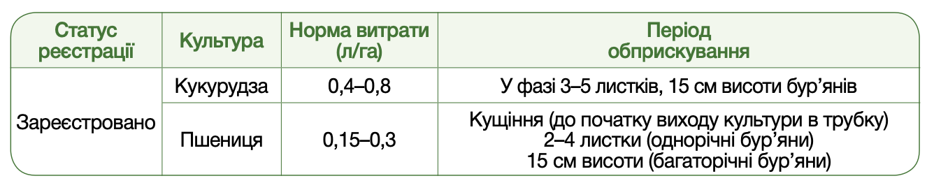 не фітотоксичний у рекомендованих дозах, не має обмежень у сівозміні