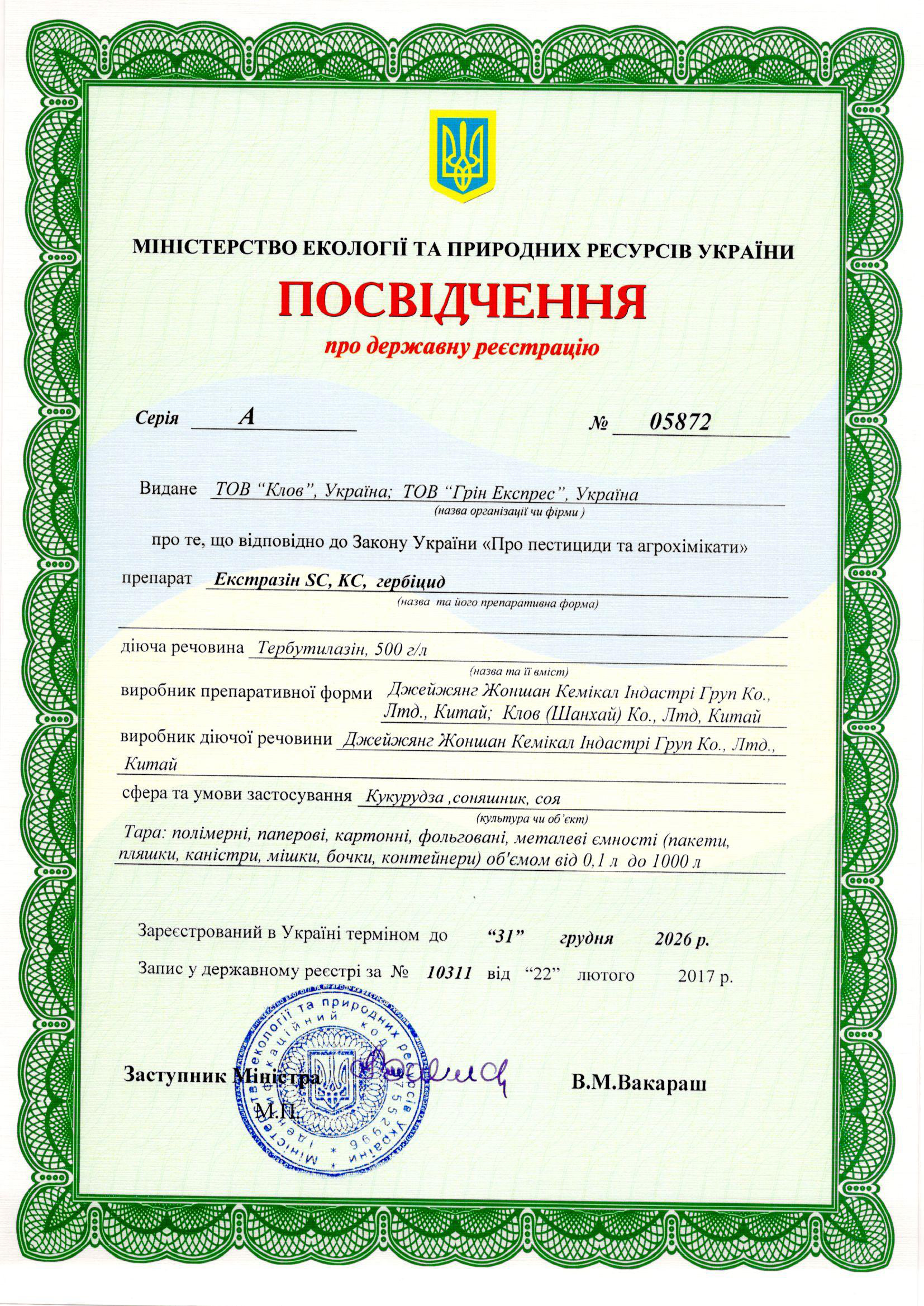 • ЕКСТРАЗІН SC, КС – системний селективний гербіцид ґрунтової дії проти широкого спектра дводольних бур’янів для таких культур, як соняшник, кукурудза та соя.