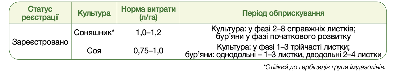 • ІРОКЕЗ SL, РК – післясходовий системний селективний гербіцид групи імідазолінів для боротьби зі злаковими й дводольними бур’янами на посівах сої та гібридів соняшнику, стійких до імідазолінової групи.