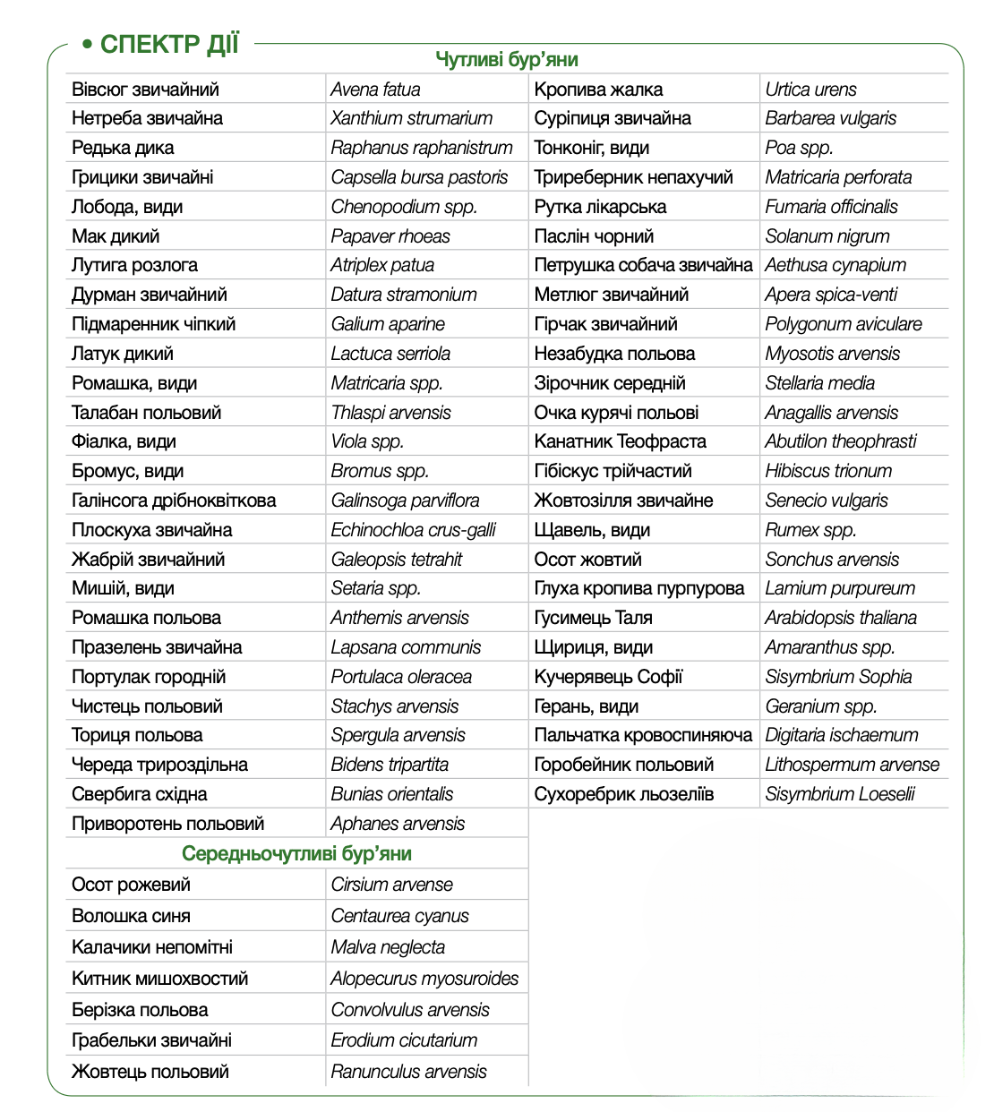 виражена грунтова дія стримує появу наступних хвиль бур'янів.