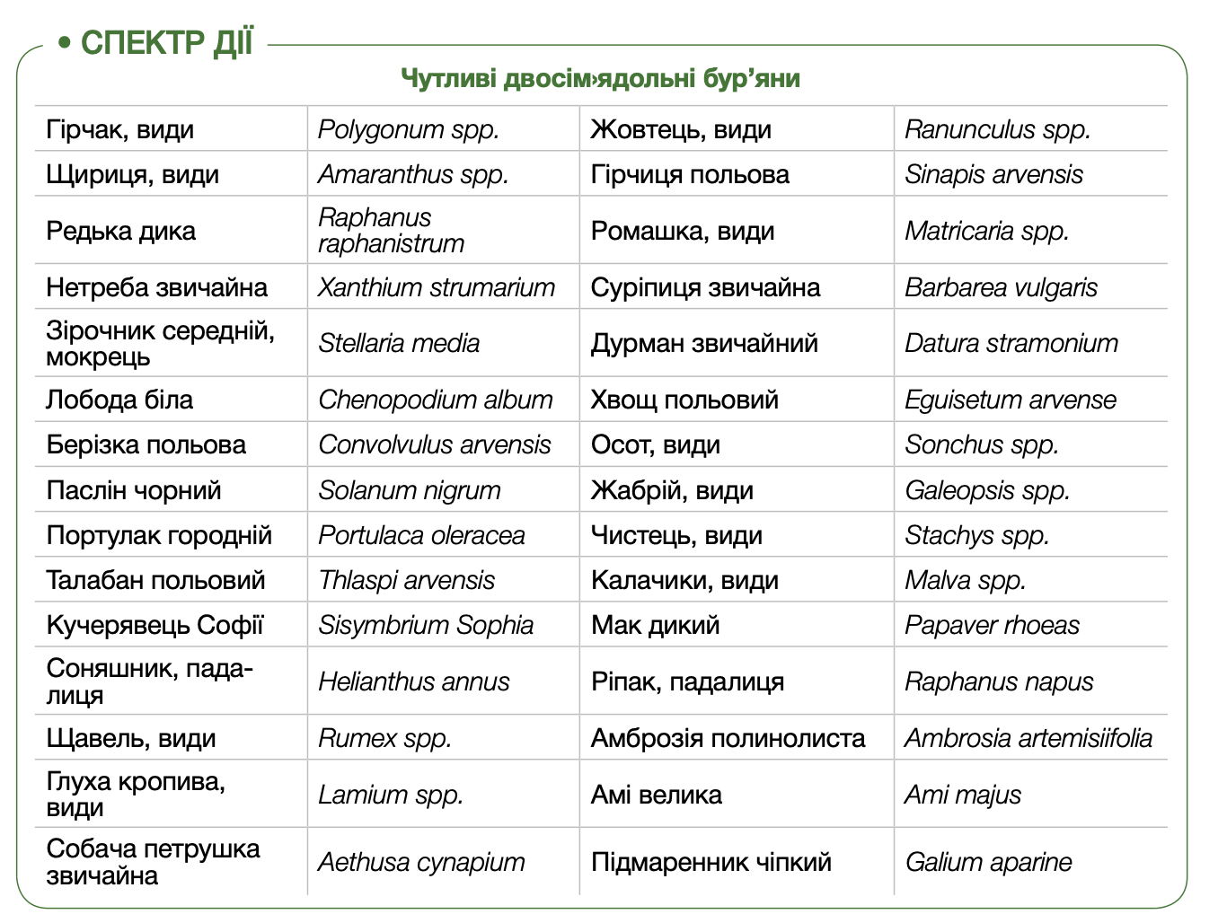 контроль понад 200 видів бур’янів, зокрема карантинних
