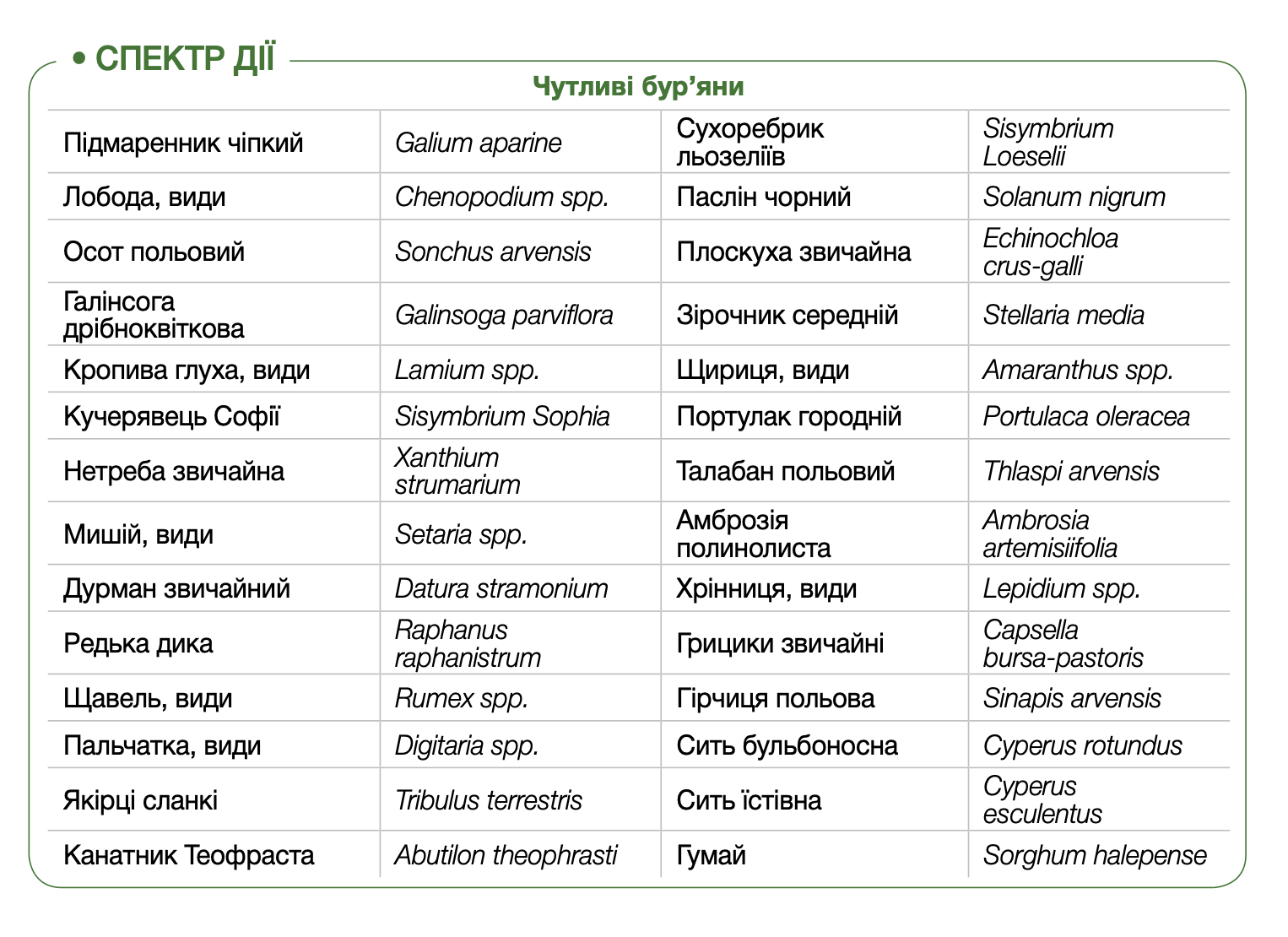 високоефективний як ґрунтовий, так і післясходовий гербіцид