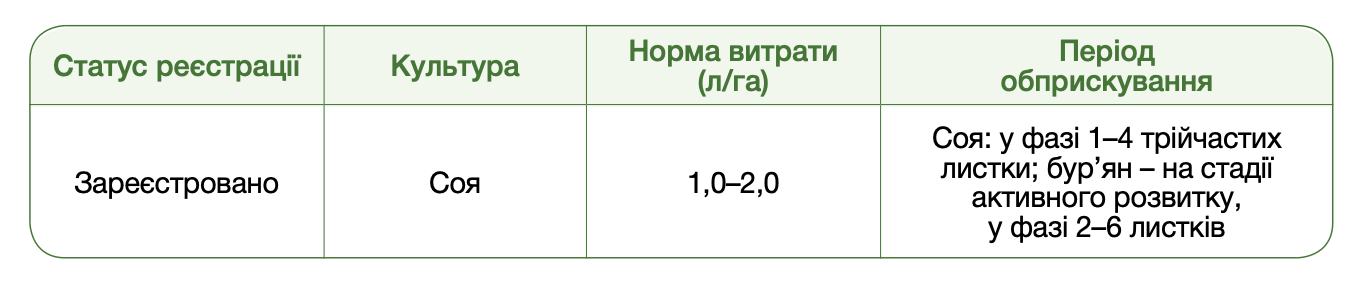 • СОЙГАРД ГОЛД SL, PK – післясходовий селективний гербіцид групи нітрофенолів для ефективної боротьби з широколистими бур’янами на посівах coї.
