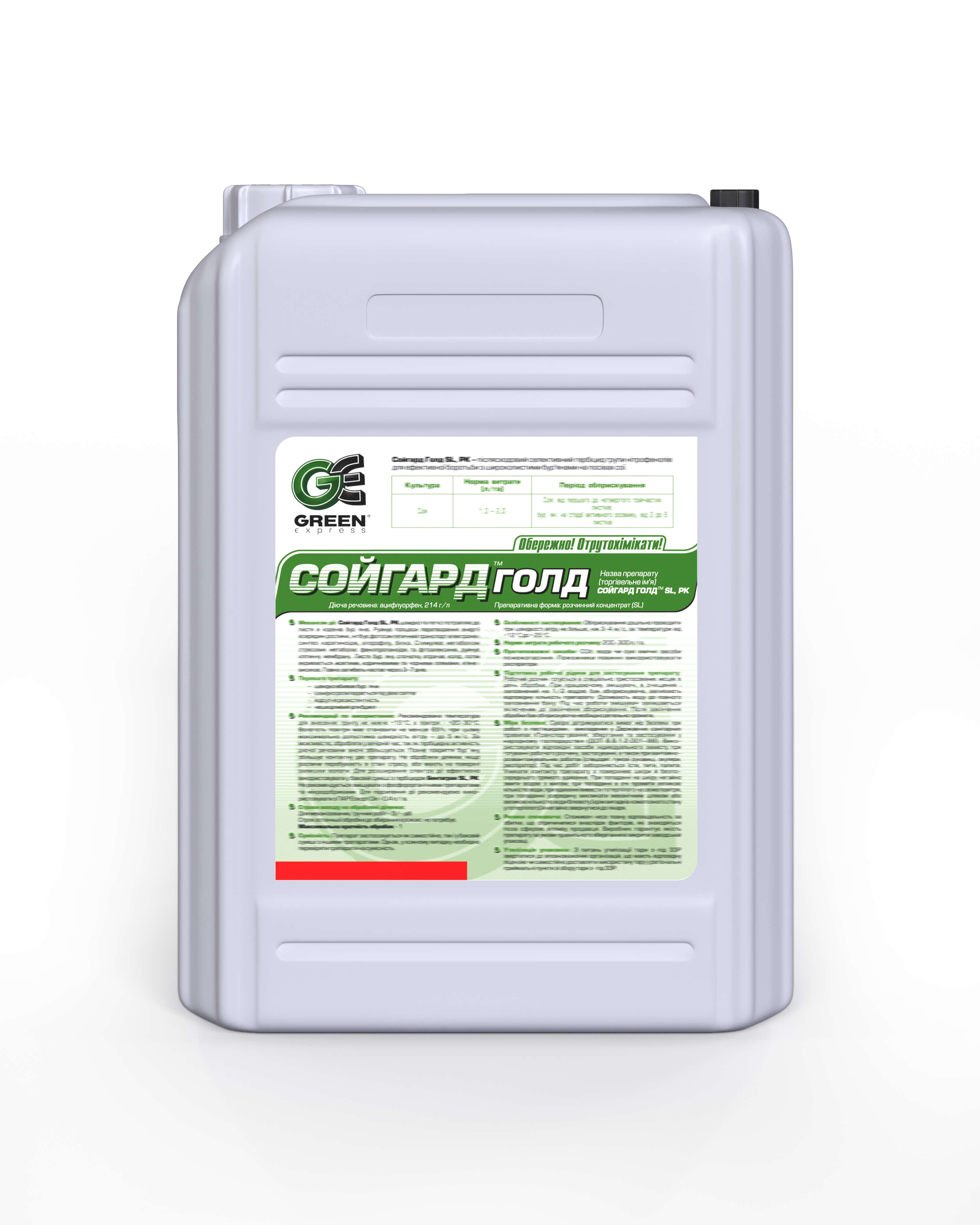 • СОЙГАРД ГОЛД SL, PK – післясходовий селективний гербіцид групи нітрофенолів для ефективної боротьби з широколистими бур’янами на посівах coї.