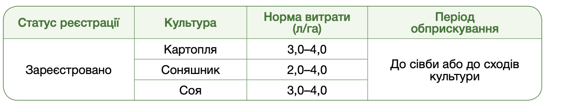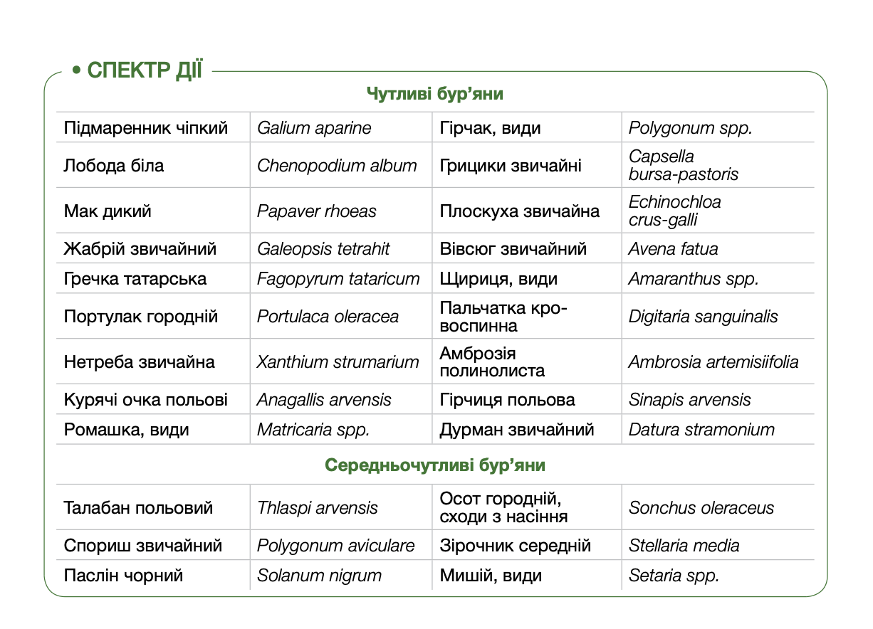якісний компонент для сумішей з іншими грунтовими гербіцидами.