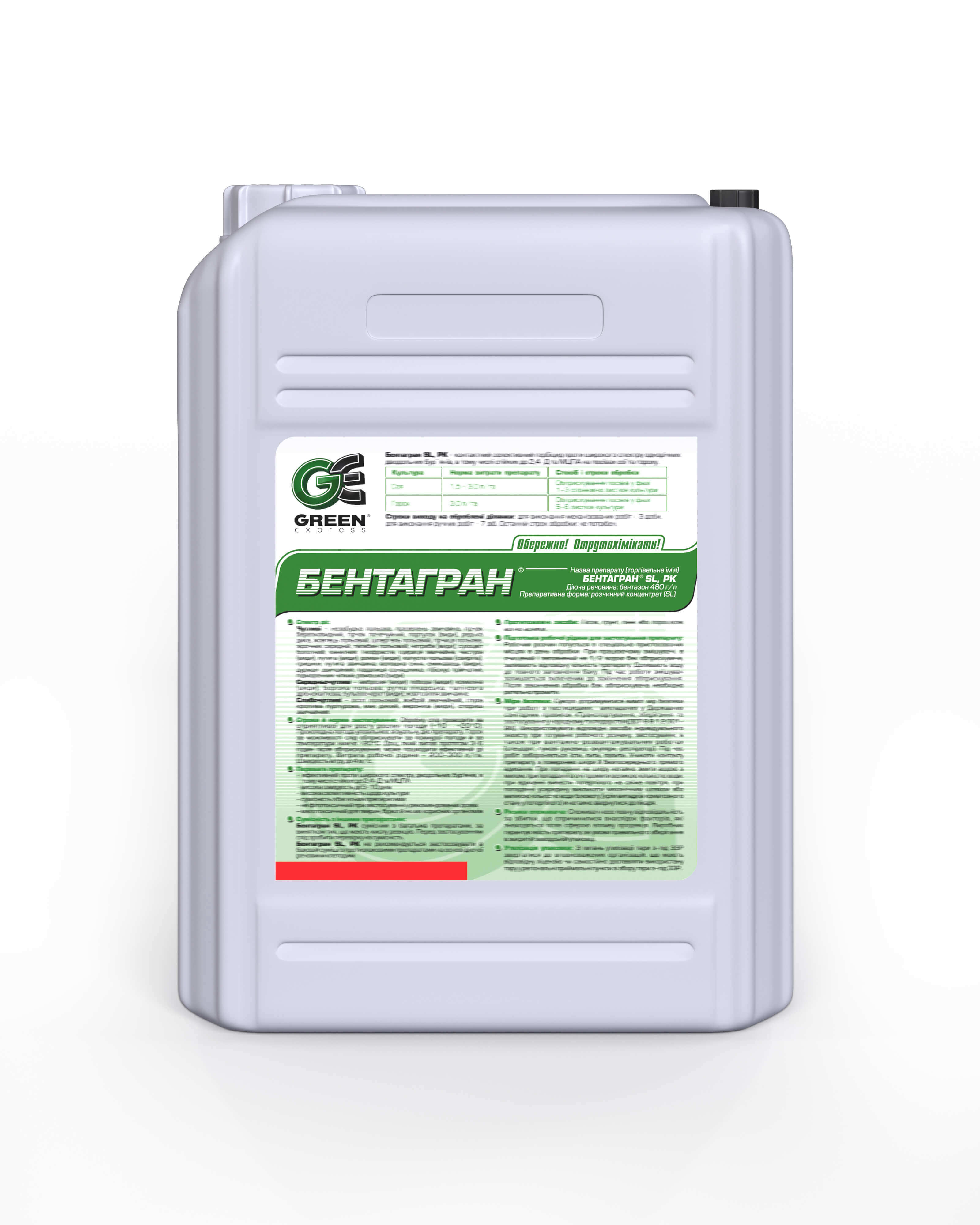 • БЕНТАГРАН SL, PK – ефективний селективний контактний гербіцид проти однорічних дводольних бур’янів на посівах сої та гороху, зокрема стійких до 2,4–Д та МЦПА.
