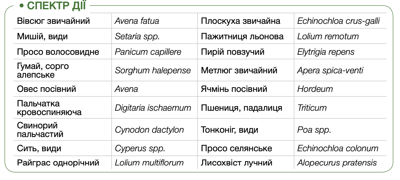 досконально вирішує проблему злакових бур’янів до кінця сезону