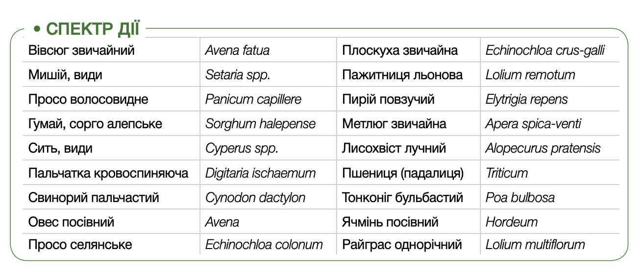 завдяки досконалій формулі активний інгредієнт надійно утримується та добре поглинається листками бур’янів
