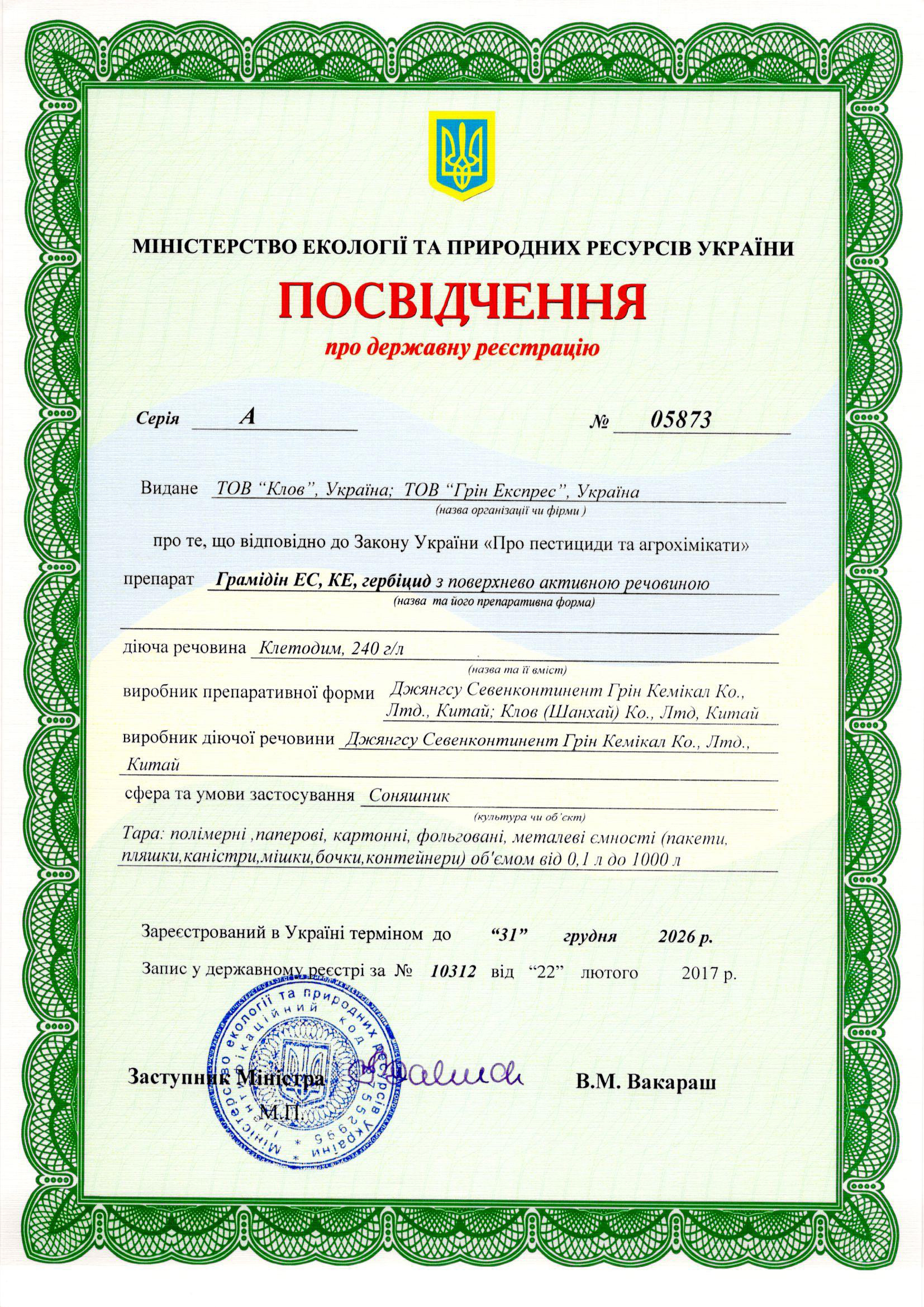 • ГРАМІДІН EC, КЕ – післясходовий селективний гербіцид проти однорічних та багаторічних однодольних бур’янів на посівах соняшнику.