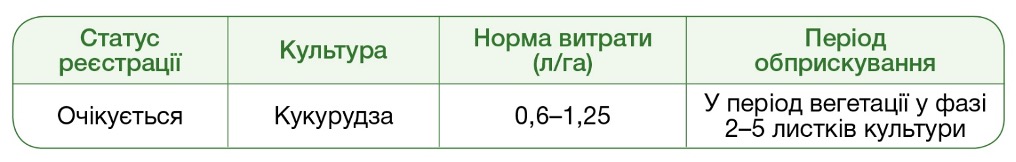контролює падалицю ріпаку та соняшнику, зокрема стійку до ALS-інгібіторів