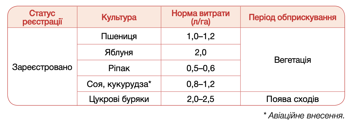 Не рекомендовано вносити препарат у баковій суміші з препаратами групи сульфонілсечовини. Оптимальна температура для внесення становить від +10°С до +25°С. Для розширення спектра дії рекомендована бакова суміш з препаратом КАРАТЕЛЬ ЕС, КЕ. Можна змішувати з іншими препаратами, які не мають лужної реакції. Обприскування проводять зранку чи ввечері, швидкість вітру має бути не більше 3 м/с.