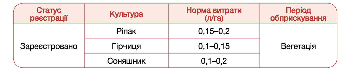 • ТІАПРИД SC, КС – системний інсектицид для боротьби з широким спектром шкідників на соняшнику, гірчиці, ріпаку.