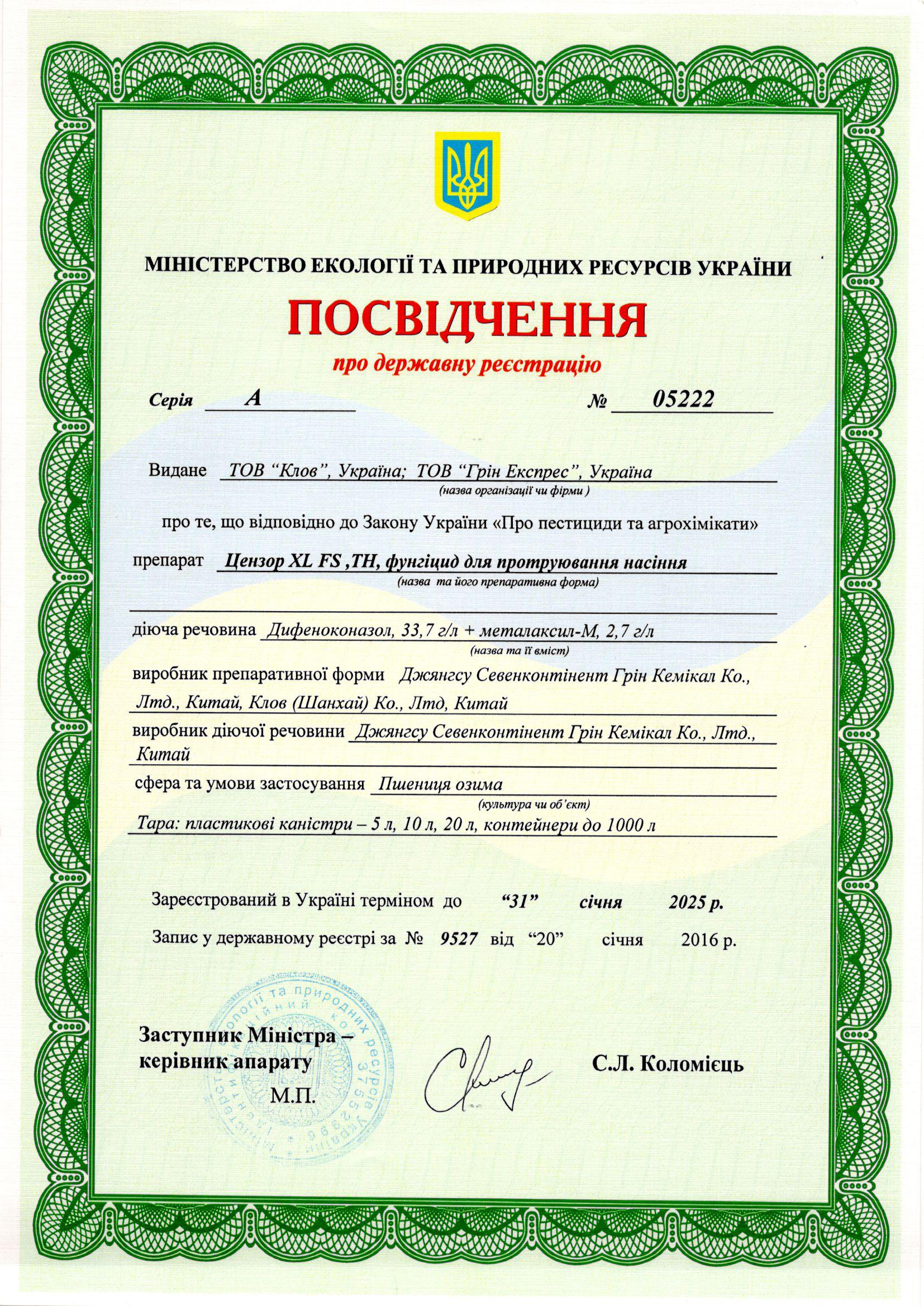 • ЦЕНЗОР XL FS, TH – універсальний двокомпонентний фунгіцид системної дії для передпосівної обробки насіння зернових культур.
