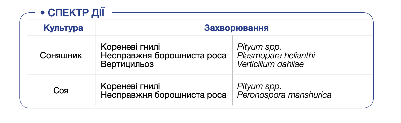 широкий спектр дії (коренеїд, кореневі гнилі, фітофтороз та пероноспороз)