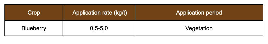 no phytotoxic effect observed at application rates of 0.5–5.0 kg/ha for foliar feeding and fertigation of blueberries
