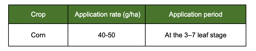 The optimal temperature range for applying NIKA PLUS WG is between +15°C and +25°C. Application is not recommended if temperatures drop to +6°C or if there is a sharp temperature fluctuation. The use of the product is prohibited on sweet corn, popping corn, and parental inbred lines. If replanting is required after treatment, only corn should be sown again on the same field. Do not apply the herbicide when the crop is wet from rain or dew.For maximum herbicidal efficacy, the product must be applied together with a surfactant: either ESCORT at 0.2 L per 100 L of spray solution, or ESCORT BIO at 0.5 L per 100 L of spray solution. If weeds have overgrown beyond the recommended stage, it is advisable to add ammonium nitrate or urea at 4–5 kg/ha (actual weight) to the spray solution.