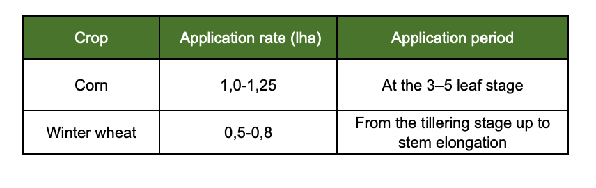 The optimal temperature range for spraying is between +12°C and +25°C. The product shows the highest efficacy when applied at early growth stages of actively growing broadleaf weeds. First visible effects of ONYX SL appear 2–4 days after application, with complete weed death occurring within 14–21 days. Overlapping spray zones should be avoided. To broaden the spectrum of activity against grass weeds, tank mixing is recommended with: NIKA PLUS WG, NIKA WG, PANTHEON WG, FLAME PLUS SC, RAPIDUS WG. Do not apply if ambient temperature is +30°C or higher. There is documented experience of successful use of analogous products on wheat and barley crops.