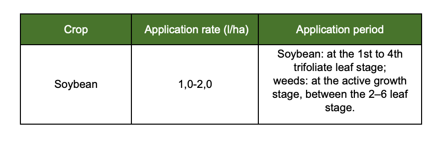 Soil temperature should be no lower than +15°C, and air temperature should range between +20–30°C. Air humidity should be at least 65%, with a maximum allowable wind speed of up to 5 m/s. If possible, apply in the evening, as the herbicidal activity of the active ingredient increases at night. Full coverage of weed foliage enhances the contact action of the product. Do not apply the product if the plants are under stress or have moisture residue on the surface. To broaden the spectrum of weed control, it is effective to use in tank mix with BENTAGRAN SL, herbicide. Do not mix with organophosphates or micronutrient fertilizers.For enhanced efficacy, it is recommended to use with ESCORT OIL adjuvant at a rate of 0.4 L/ha.