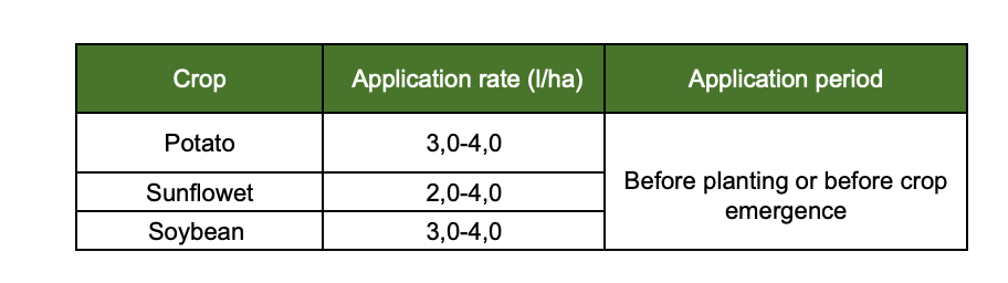 The application rate of STRATEG SC, depends on the soil’s mechanical composition and the expected weed infestation level. On light soils, apply STRATEG SC at lower recommended rates; on heavy soils, increase the rate to the maximum recommended dosage. Do not perform inter-row cultivation after application, as this will reduce the herbicidal effectiveness. If soil moisture is insufficient, a shallow incorporation (2–3 cm) is recommended. STRATEG SC, SC has corrosive properties, so it is essential to thoroughly rinse the sprayer with a large volume of water immediately after use.