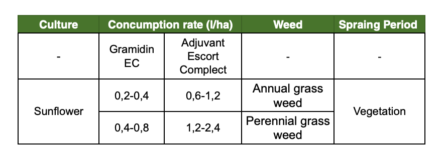 GRAMIDIN EC - post-selective herbicide against annual and perennial monocotyledonous weeds in sunflower crops.