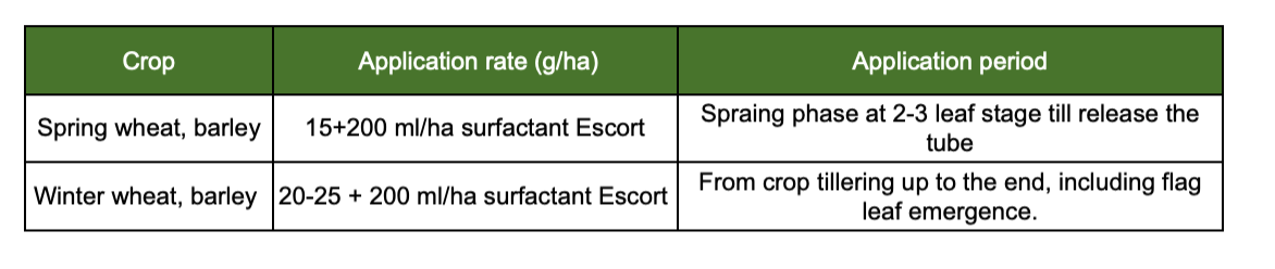 effective protection of grain crops from many types of annual and perennial weeds, including those resistant to herbicides based on 2,4-D and MCPA