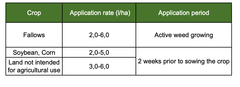 The optimal ambient temperature is from +12 to +25°С. When spraying, do not allow wear to neighboring fields. There is a practice of using it as a desiccant. Precipitation that fell 6 hours after application does not affect the effectiveness of the action. Mechanical processing should be carried out 12-14 days after application of GROM TOTAL SL,