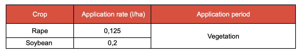 It is recommended to apply the product in the evening or early morning hours, when temperatures are between +15°C and +25°C, under dry and windless conditions. In case of pest infestation, for broader-spectrum control, it is compatible with insecticides such as ALPHAZOL SL; DRAGOON EC, and acaricides such as PREFECT EC ; CALIGULA SC. Do not apply during flowering or bee flight periods.