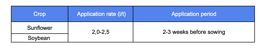 low application rate per hectare